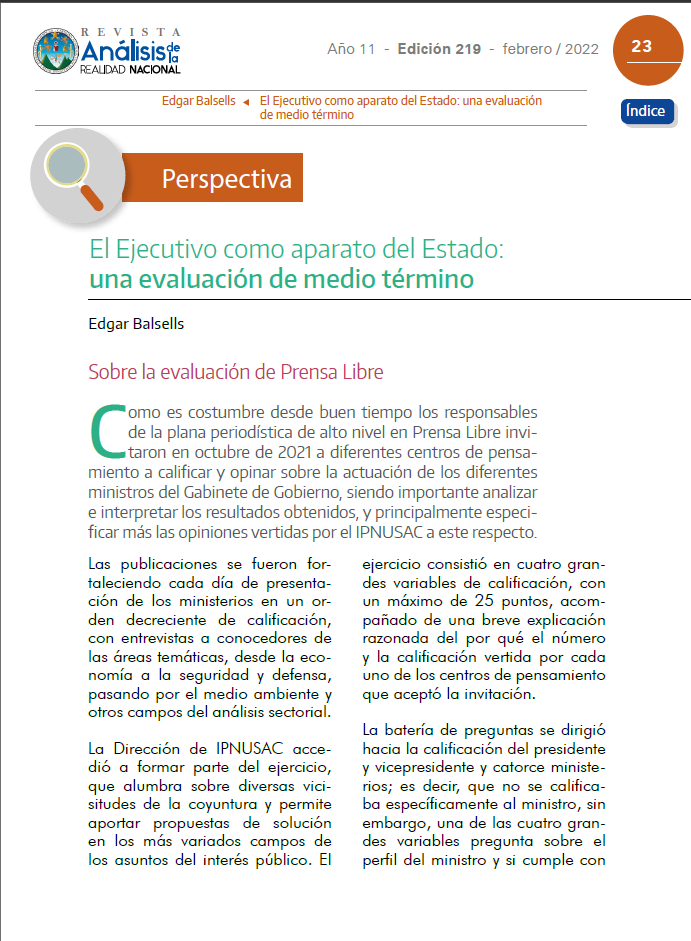 El Ejecutivo como aparato del Estado: una evaluación de medio término. (2025). Análisis De La Realidad Nacional, 11(219), 23-40. https://revistasguatemala.usac.edu.gt/IPNUSAC/article/view/2526