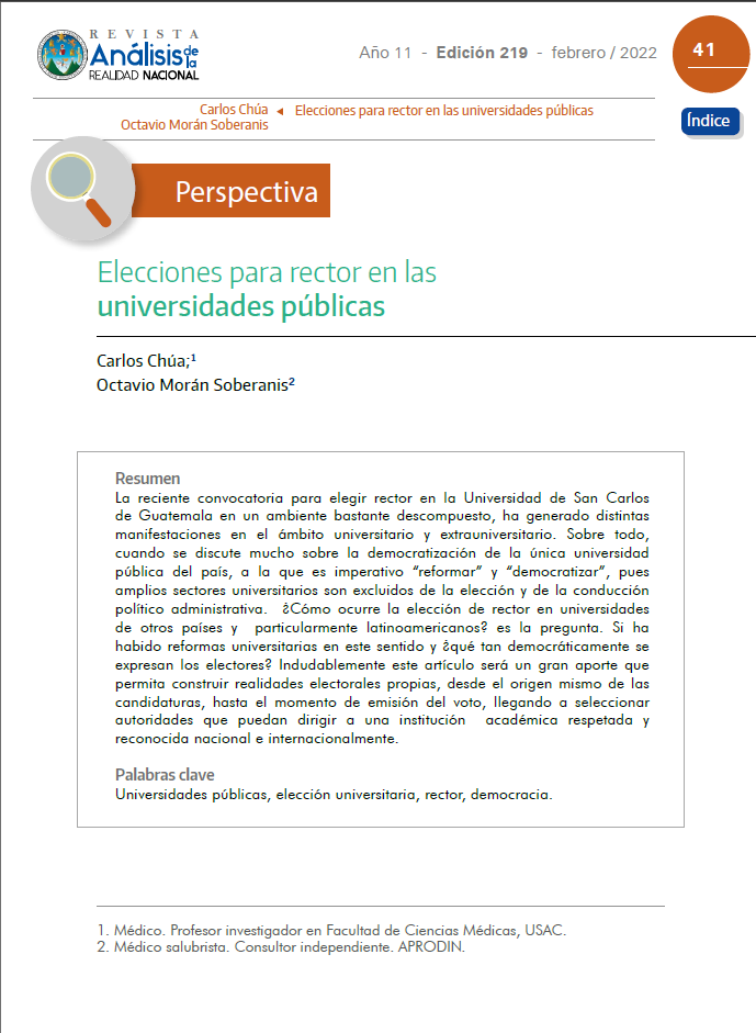 habido reformas universitarias en este sentido y ¿qué tan democráticamente se expresan los electores? Indudablemente este artículo será un gran aporte que permita construir realidades electorales propias, desde el origen mismo de las candidaturas, hasta el momento de emisión del voto, llegando a seleccionar autoridades que puedan dirigir a una institución académica respetada y reconocida nacional e internacionalmente.