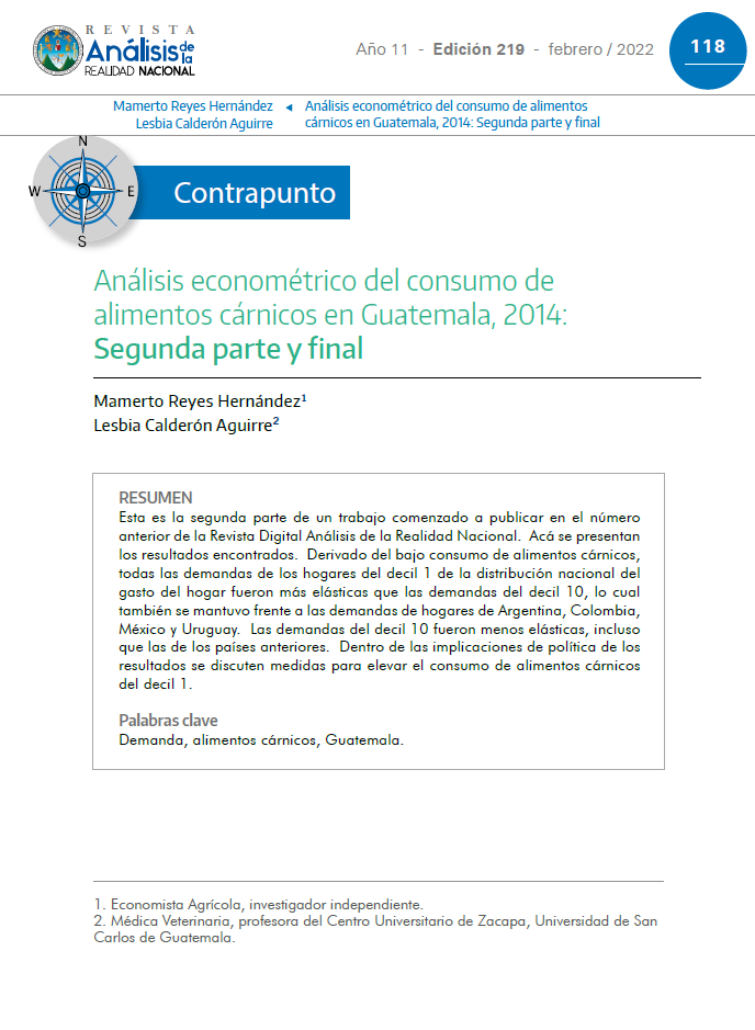 Análisis econométrico del consumo de alimentos cárnicos en Guatemala, 2014: Segunda parte y final
