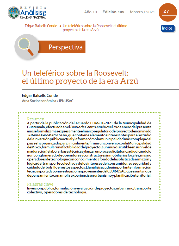 país se ha organizado para, inicialmente, firmar un convenio con la Municipalidad de Mixco, formular una factibilidad del proyecto (aún muy discutible en su nivel de maduración) elaborar bases técnicas y lanzar un proceso licitatorio, adjudicándolo a un conglomerado de operadores y constructores inmobiliarios locales, mas no operadores de tecnología con conocimiento a fondo de la sofisticada armazón y lógica del transporte colectivo y de los intereses del consumidor, su seguridad y cuidado del bolsillo en estos aspectos. El análisis acude a importante información técnica aportada por investigaciones provenientes del CEUR-USAC, que es un tanque de pensamiento con amplia experiencia en urbanismo y planificación territorial.