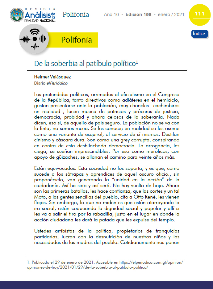 ciega, se sueñan imprescindibles. Por eso como merolicos, con apoyo de güizaches, se allanan el camino para veinte años más.