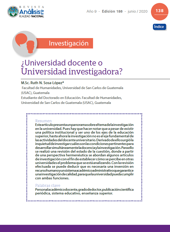 Este artículo presenta un panorama sobre el tema de la investigación en la universidad. Pues hay que hacer notar que a pesar de existir una política institucional y ser uno de los ejes de la educación superior, hasta ahora la investigación no es el eje fundamental de las actividades del docente universitario. Derivado de ello surgió la inquietud de investigar cuáles son las condiciones pertinentes para desarrollar simultáneamente la docencia y la investigación. Para ello se realizó una revisión del estado de la cuestión, donde a partir de una perspectiva hermenéutica se abordan algunos artículos de investigación con el fin de establecer cómo se percibe en otras universidades el problema que se está analizando. Con la revisión efectuada se puede deducir que es necesaria una inversión en recurso humano y un sistema académico administrativo que garantice una investigación de calidad, para que la universidad pueda cumplir con ambas funciones.