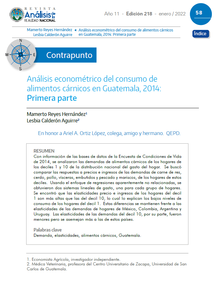 Análisis econométrico del consumo de alimentos cárnicos en Guatemala, 2014: Primera parte