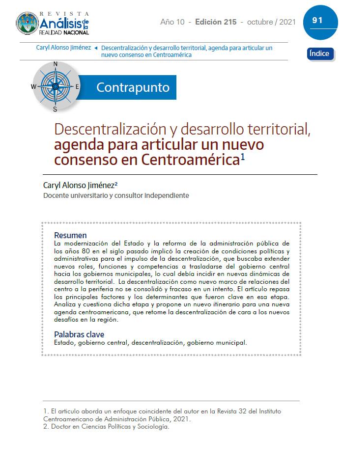 Descentralización y desarrollo territorial, agenda para articular un nuevo consenso en Centroamérica