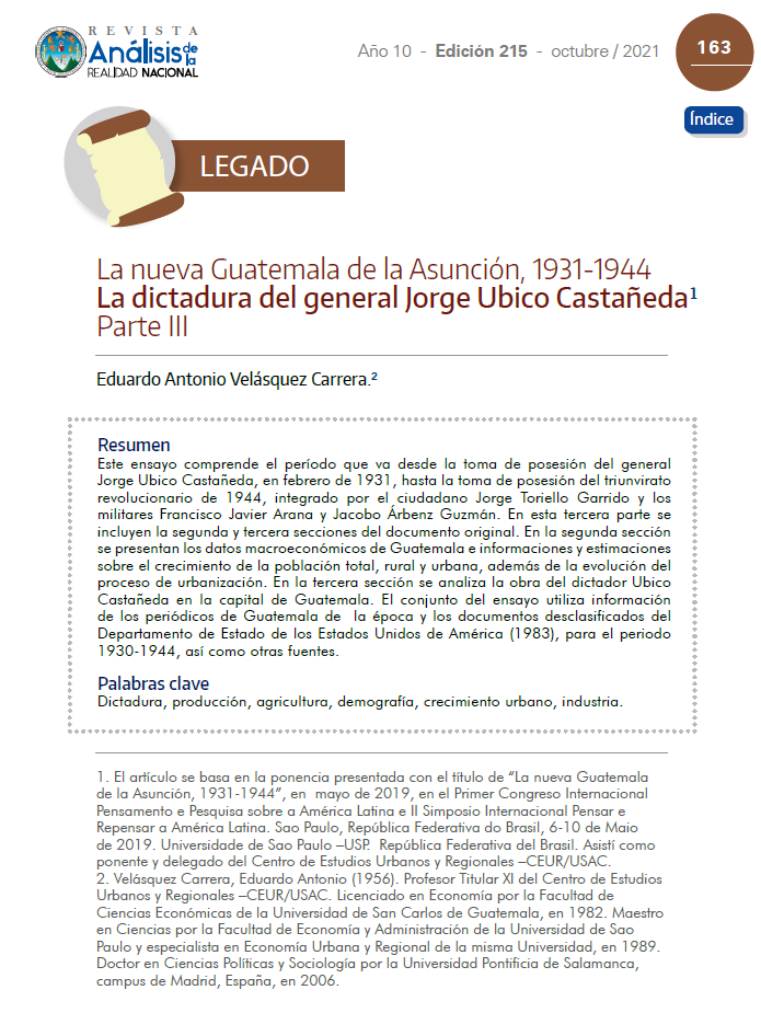 La nueva Guatemala de la Asunción, 1931-1944 La dictadura del general Jorge Ubico Castañeda1 Parte III