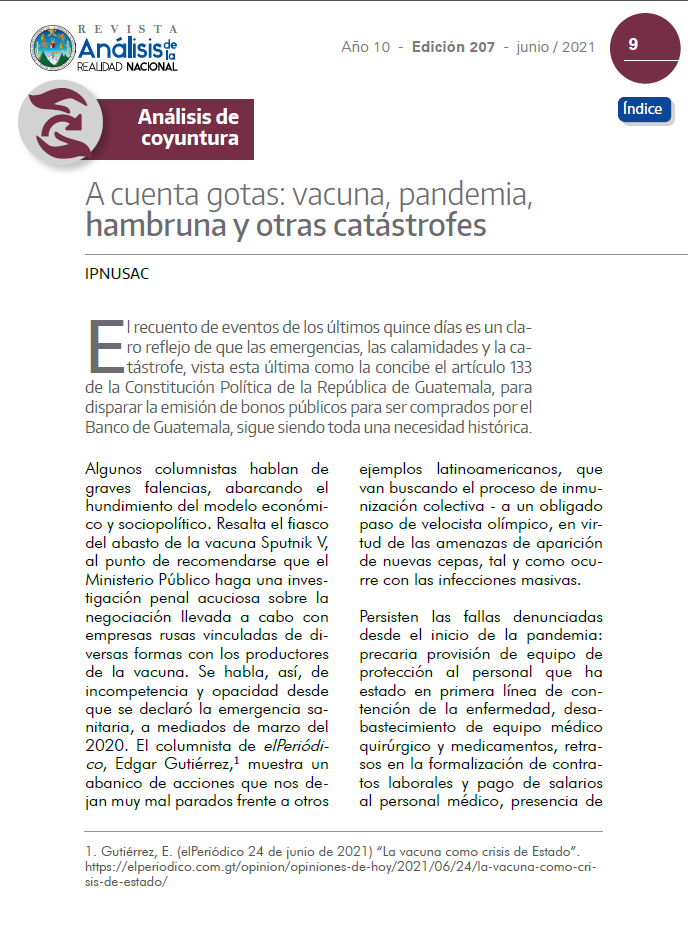 A cuenta gotas: vacuna, pandemia, hambruna y otras catástrofes