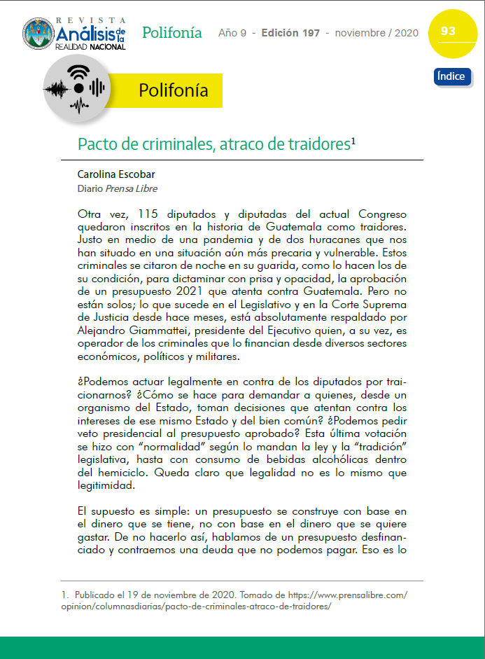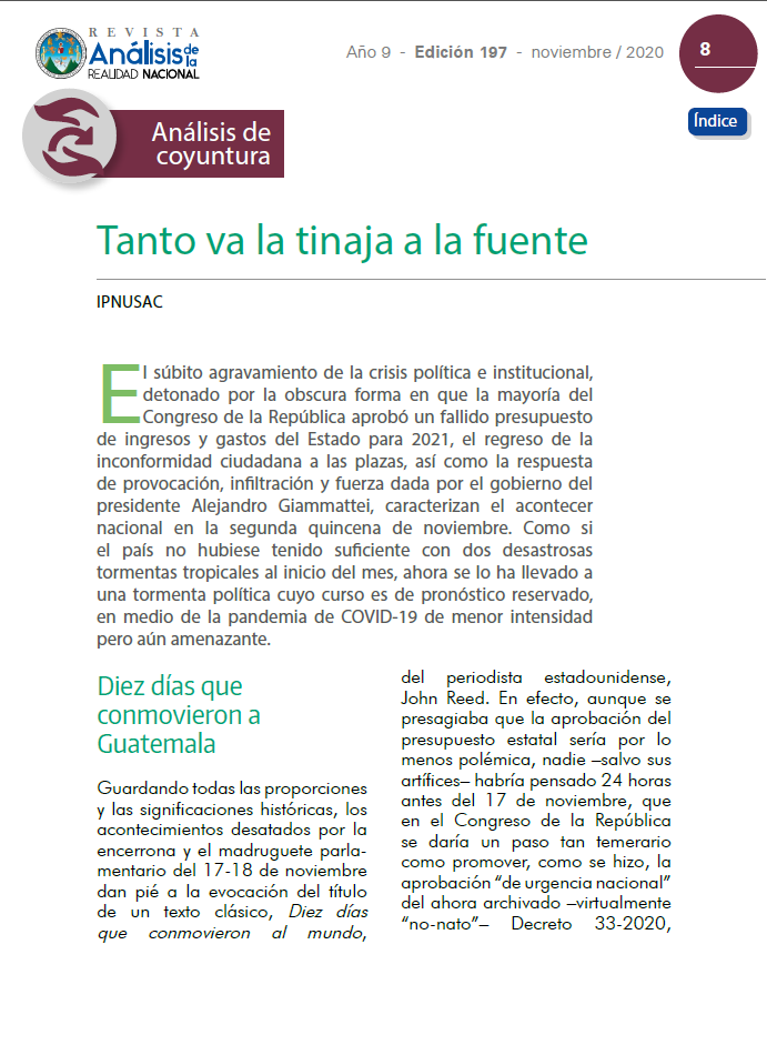 Su solidaridad con el pueblo de Guatemala y especialmente con los ciudadanos y ciudadanas que el día sábado 21 de noviembre de 2020, haciendo uso de su derecho constitucional de manifestar en contra del Presupuesto General de Ingresos y Egresos del Estado