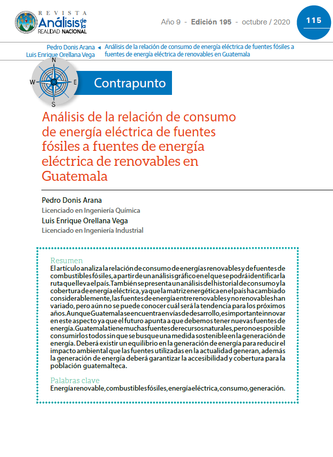 Análisis de la relación de consumo de energía eléctrica de fuentes fósiles a fuentes de energía eléctrica de renovables en Guatemala