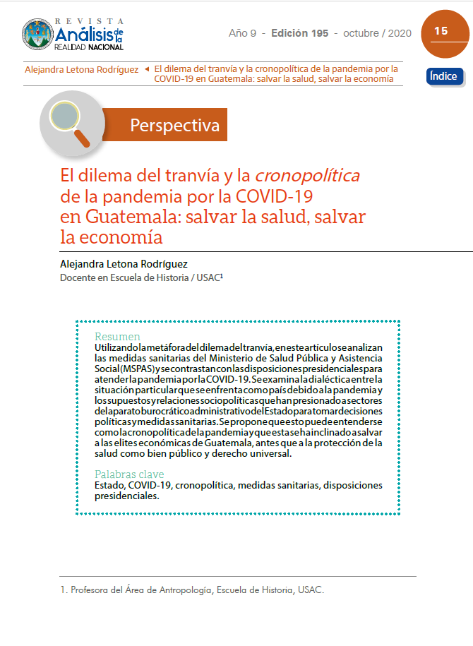 El dilema del tranvía y la cronopolítica de la pandemia por la COVID-19 en Guatemala: salvar la salud, salvar la economía