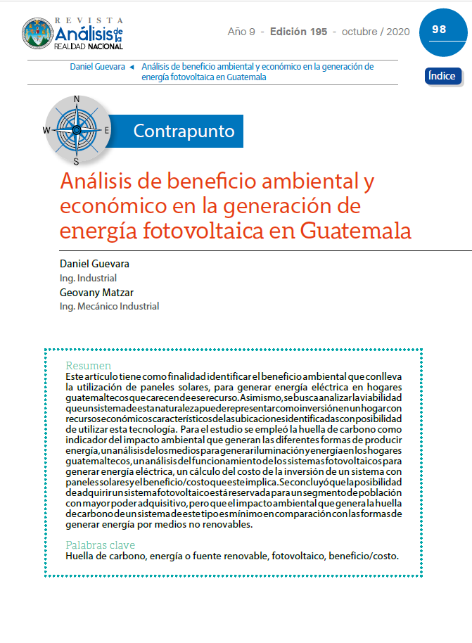 Análisis de beneficio ambiental y económico en la generación de energía fotovoltaica en Guatemala