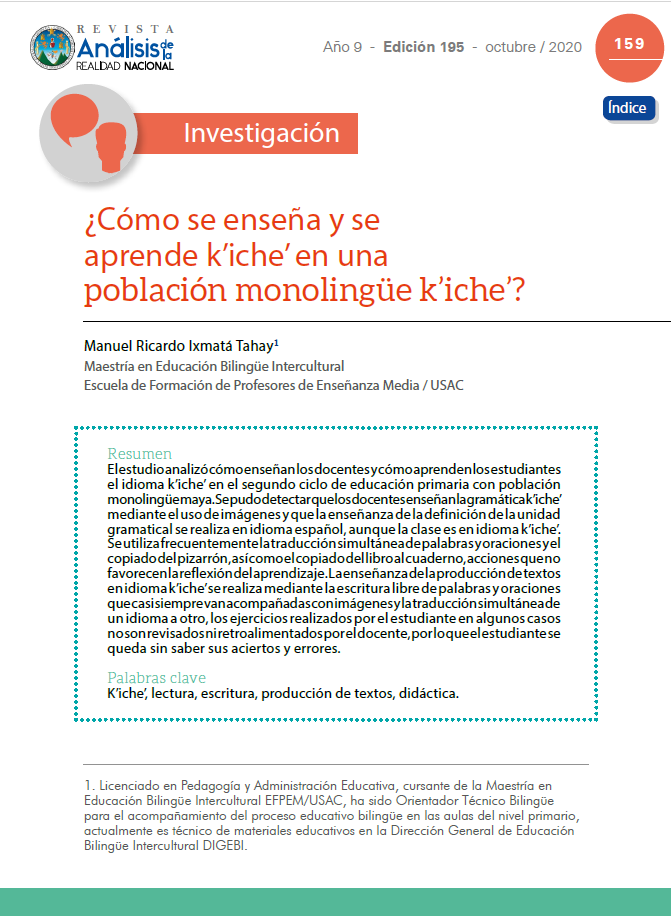 ¿Cómo se enseña y se aprende k’iche’ en una población monolingüe k’iche’?