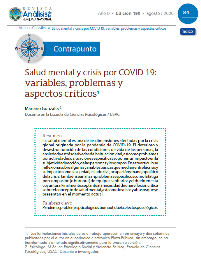 Salud mental y crisis por COVID 19: variables, problemas y aspectos críticos
