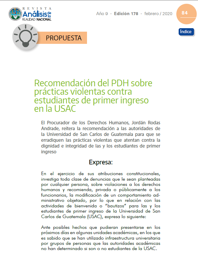 Recomendación del PDH sobre prácticas violentas contra estudiantes de primer ingreso en la USAC