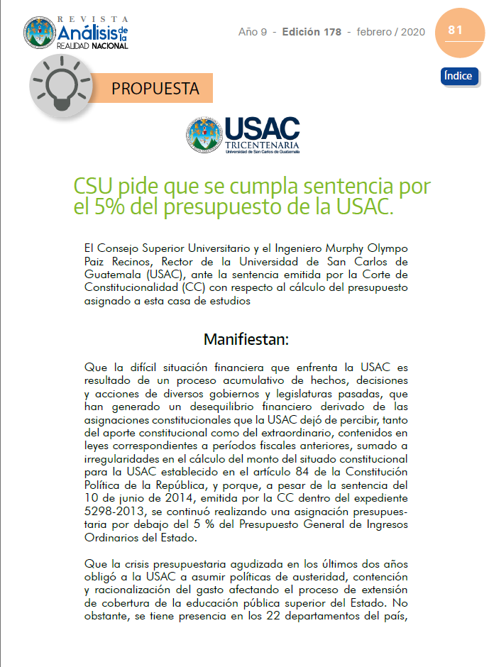 CSU pide que se cumpla sentencia por el 5% del presupuesto de la USAC